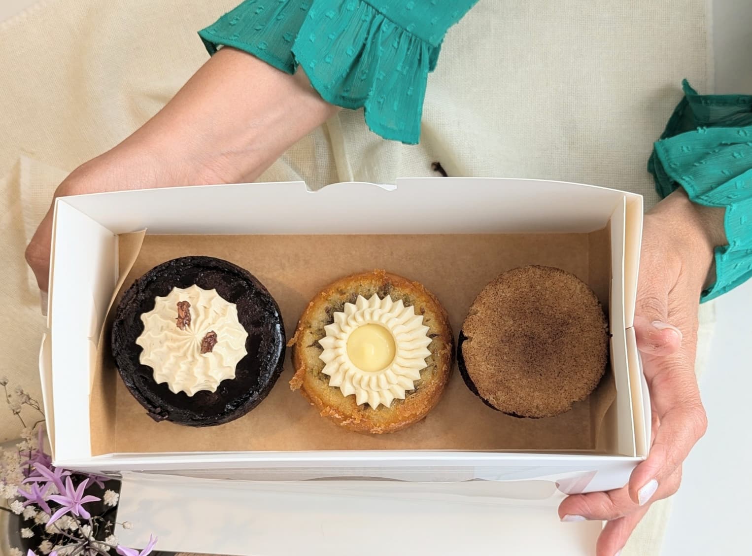 I came home and went back to the kitchen. I built a base recipe from scratch — almond flour, a casein and whey protein blend, monk fruit and allulose — with one standard: low glycemic index, no refined sugar, no compromise on flavor.